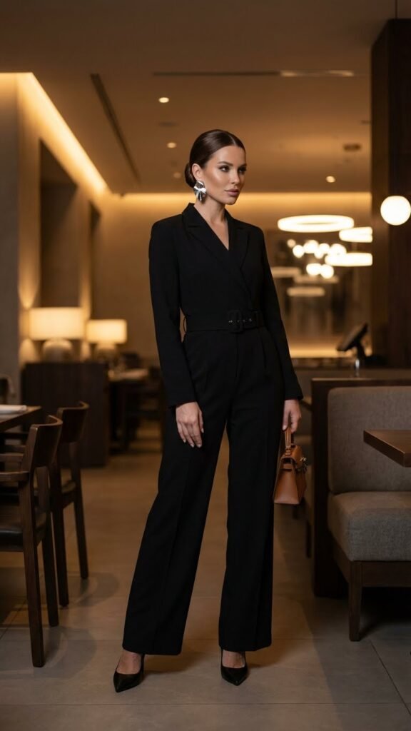 Jumpsuits are having a moment, and honestly? They deserve it. A well-fitted jumpsuit in a luxe fabric gives you that “I have my life together” energy while being secretly as comfortable as fancy pajamas. Look for one with a defined waist, maybe a wrap style or a belt detail that creates shape.