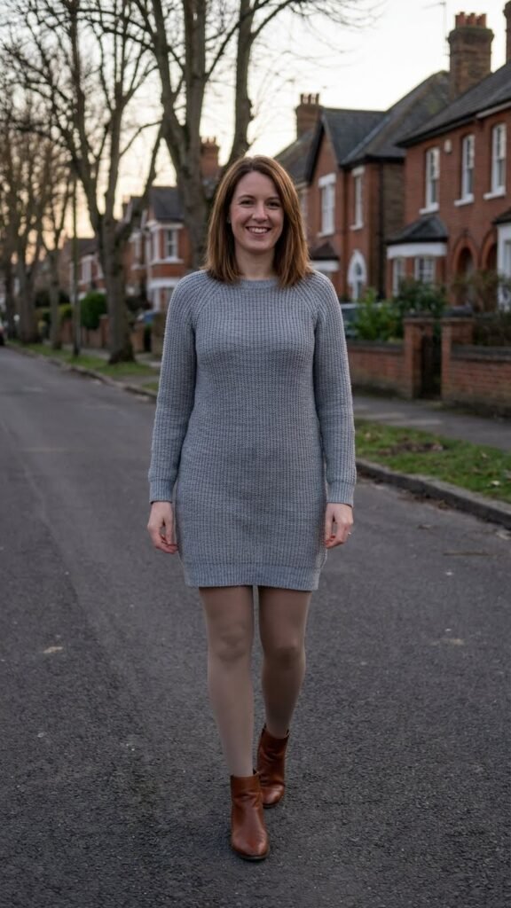 When in doubt, a sweater dress does the thing. It’s literally one piece that does all the work for you and still looks like you put thought into it. Throw on ankle boots, grab a structured bag, and you’re ready for any casual dinner scenario. The key is fit, so look for something that has some shape rather than completely shapeless sack territory. A belt can help define things if needed. I once tried pairing loafers with this and let’s just say it wasn’t my finest moment. Ankle boots are the move, trust me.