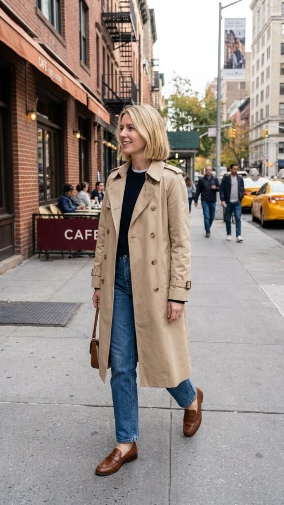 Is your outfit underneath a little boring? Nobody has to know because you’re wearing a trench coat and looking like you stepped out of a film. A trench elevates even the most basic jeans-and-tee situation into something elegant. Cinch the belt for structure or leave it open for that breezy dramatic effect. This is especially clutch for dinners where you want to look polished for the arrival but you’re actually wearing your comfiest pieces underneath. It’s fashion strategy and I’m here for it.