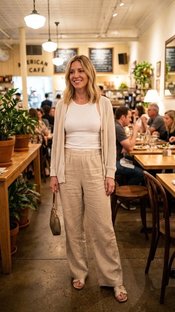 Linen Pants With a Tank and Cardigan
