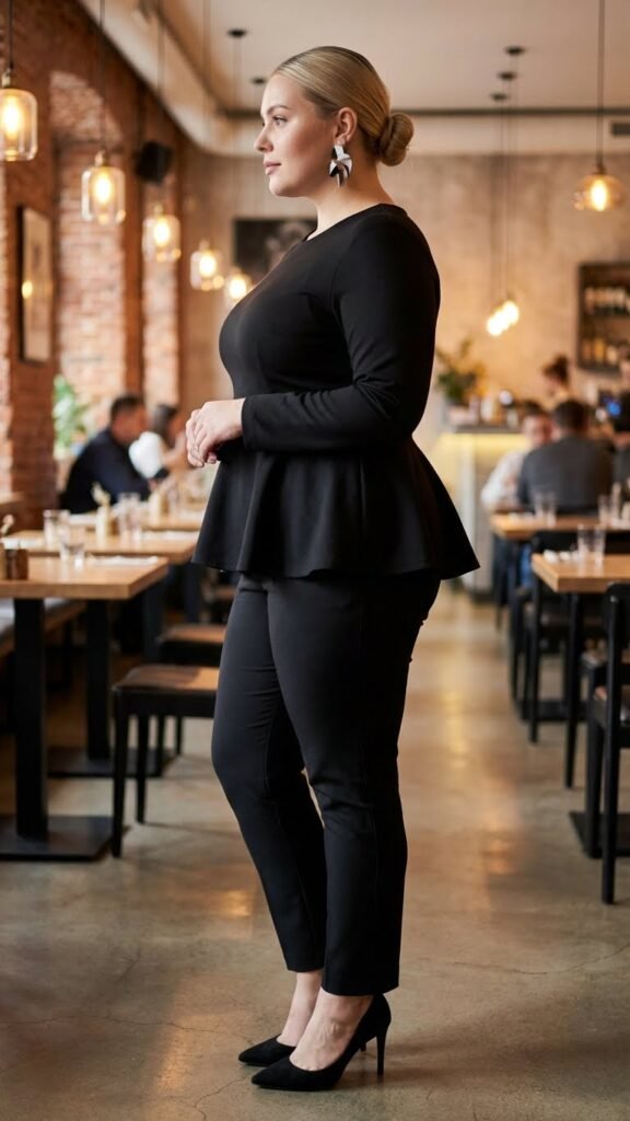 Pair a peplum blouse with slim pants or a pencil skirt for dinner. The key is keeping the bottom half sleek to balance the volume at your hips. This works especially well for bodies that want to emphasize a smaller waist while adding curve dimension. A bold color or interesting print on the peplum top becomes your statement piece.