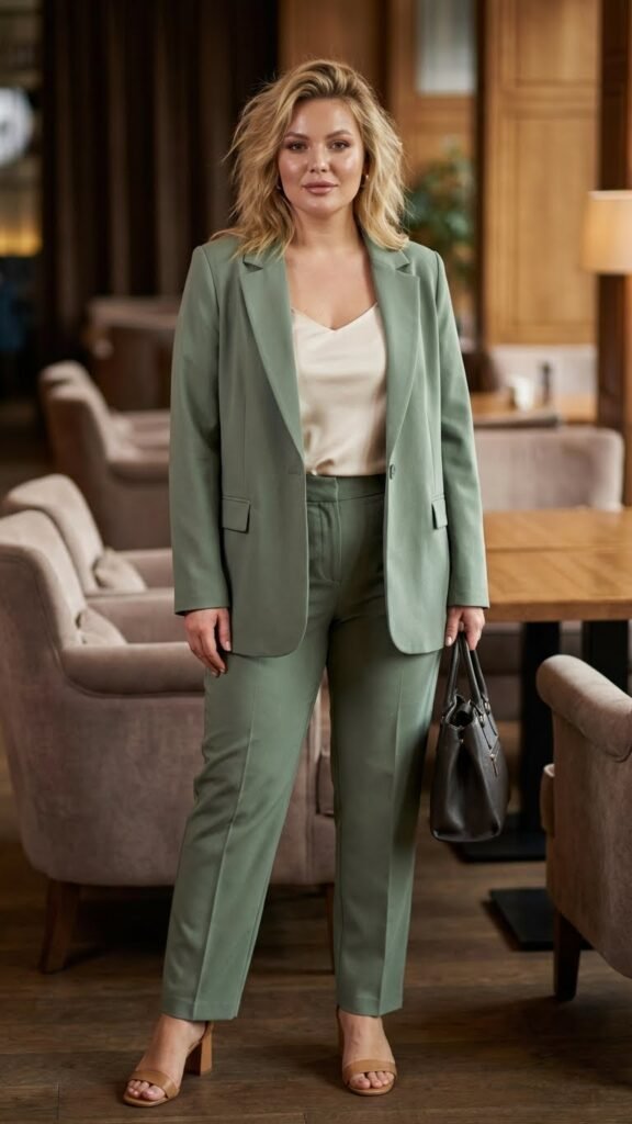 Choose a suit in an unexpected color like sage, terracotta, or even millennial pink for a fresh take. Wear it with a silky camisole underneath or even just a delicate bralette if you’re feeling bold. Block heels complete the look without sacrificing comfort. This outfit screams confidence and makes everyone wonder where you’re heading after dinner. Probably somewhere fabulous, obviously.