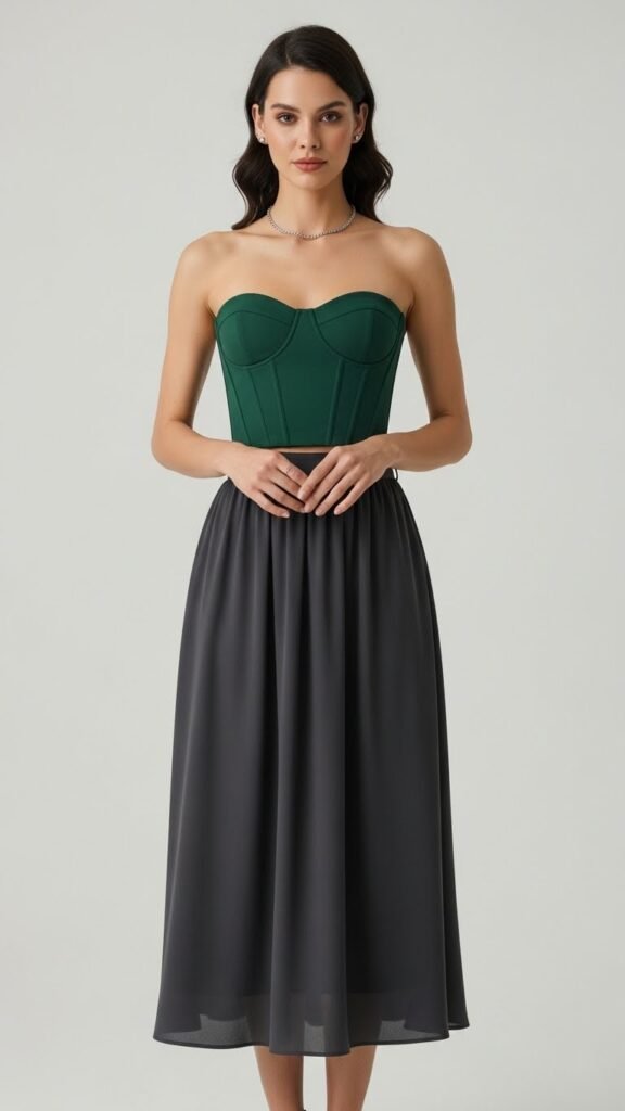 The trick is choosing a corset top that actually fits properly and provides support rather than one that’s purely decorative. Look for boning and quality construction. Pair it with a midi skirt for a more conservative setting or a mini for something with more edge. This outfit photographs incredibly well, just saying.