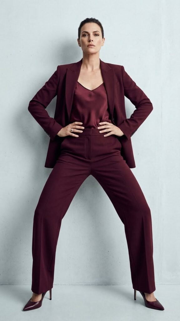 Skip the traditional shirt underneath and opt for a lacy bralette or a delicate camisole for that perfect blend of masculine and feminine. Or go shirtless with just a statement necklace if you’re feeling bold. The suit itself does the heavy lifting, so keep accessories minimal and let the tailoring speak for itself.