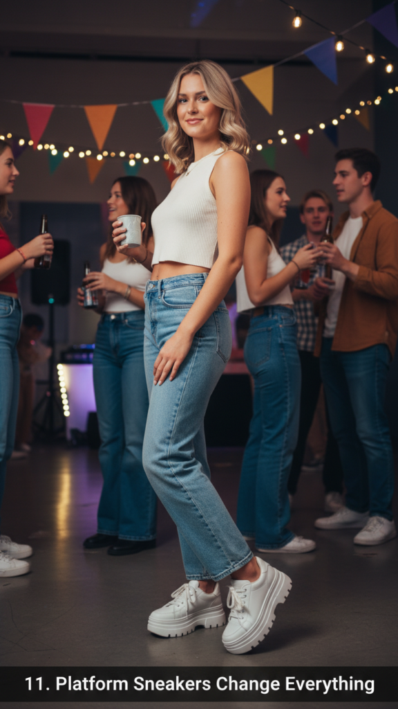 Sometimes the shoe makes the outfit, and platform sneakers are proof of that. They add height without sacrificing comfort, and they make even the simplest jeans and top combo look cooler than it has any right to.