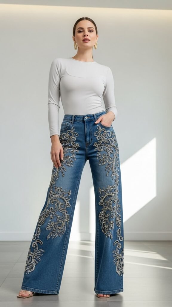 Sometimes the jeans should be the star. Wide leg, flared, embellished, or dramatically low rise. Statement denim paired with a simple fitted top lets your bottoms do all the work.