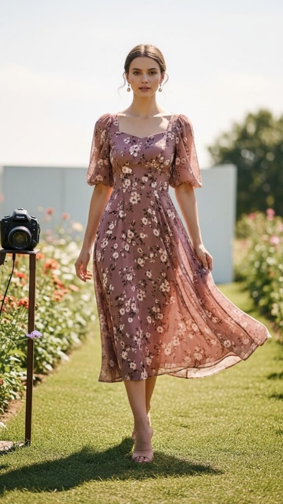 Can we talk about how puff sleeves instantly make any dress feel like it belongs in a Jane Austen adaptation? A floral midi dress in muted tones like dusty rose, sage green, or soft lavender hits differently at a garden party. The key is choosing a print that’s romantic without screaming “I’m wearing my grandmother’s curtains.”