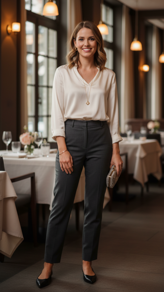 Silk Blouse and Tailored Trousers Combination