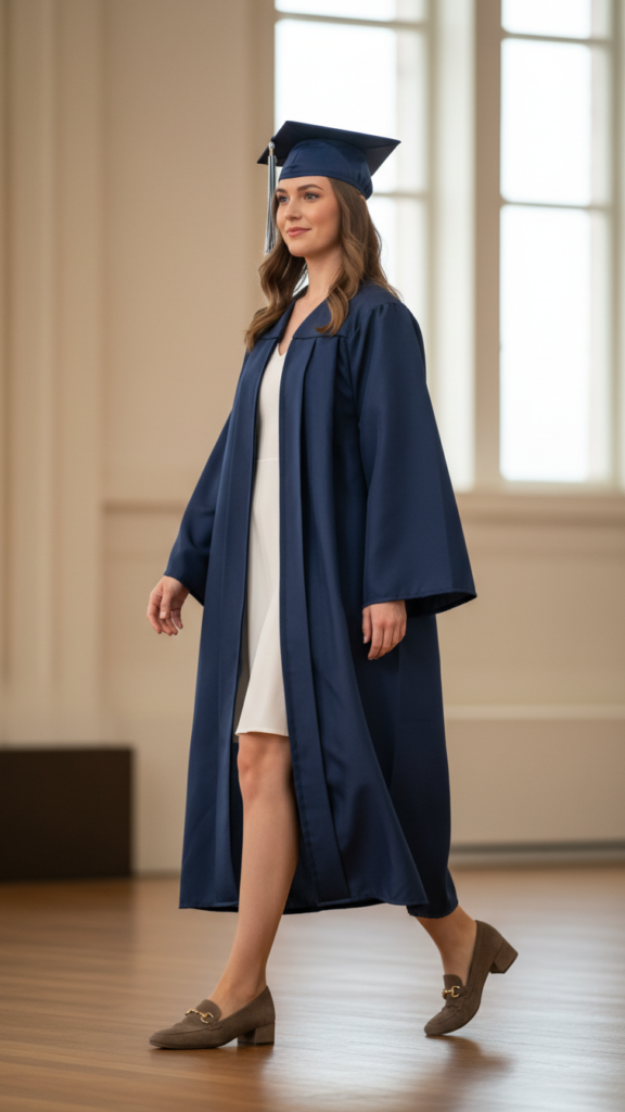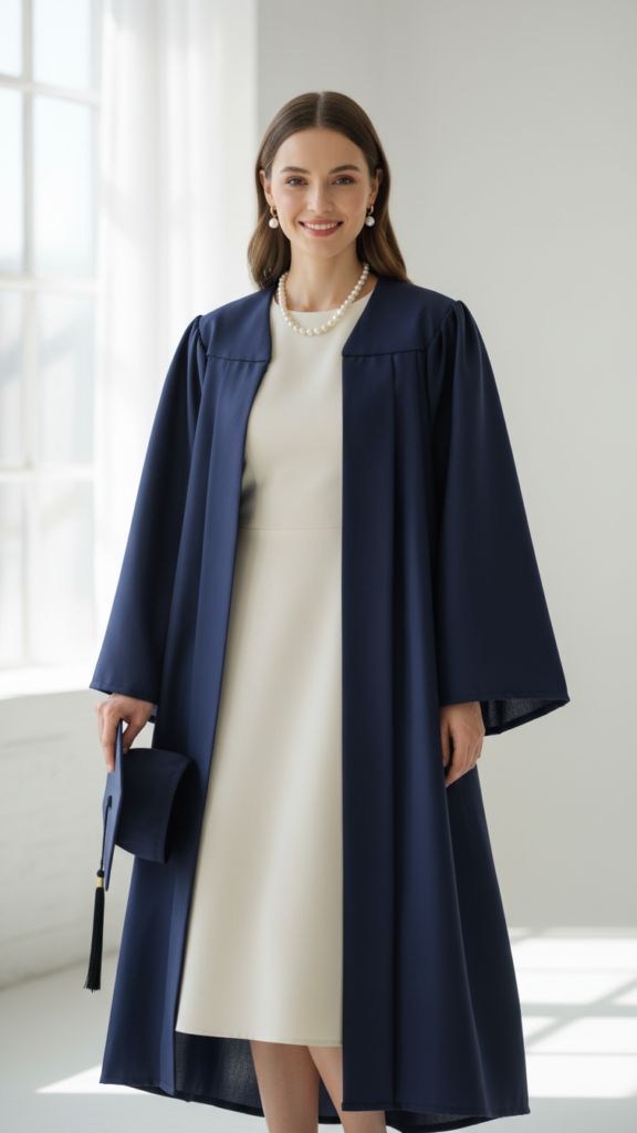 Select neutral colors like navy, black, or cream that photograph well and coordinate seamlessly with your cap and gown combination. Creating a polished look ensures you’ll feel confident and camera-ready throughout your special day.