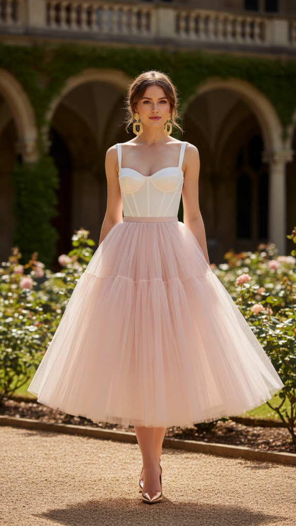 Elegance meets whimsy when you pair a voluminous tulle skirt with a sleek structured bodysuit for your graduation ceremony. This combination balances romance with sophistication, creating an unforgettable look that’s perfect for your milestone celebration.