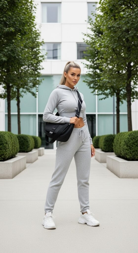 Keep your hoodie fitted so you’re not swimming in fabric. Choose one in a solid color or with minimal branding for a cleaner look. Add your favorite chunky sneakers and a crossbody bag, and you’re ready to conquer errands, coffee runs, or casual hangouts. Throw on some sunglasses and a baseball cap if you’re feeling extra sporty. This outfit proves you can be comfortable and still look intentional. Because who has time for jeans that don’t stretch? Not me.