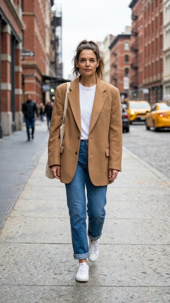 Stick to neutral blazer shades like camel, black, or gray for maximum outfit-building potential. Trust me, you’ll reach for this combo every single week.
