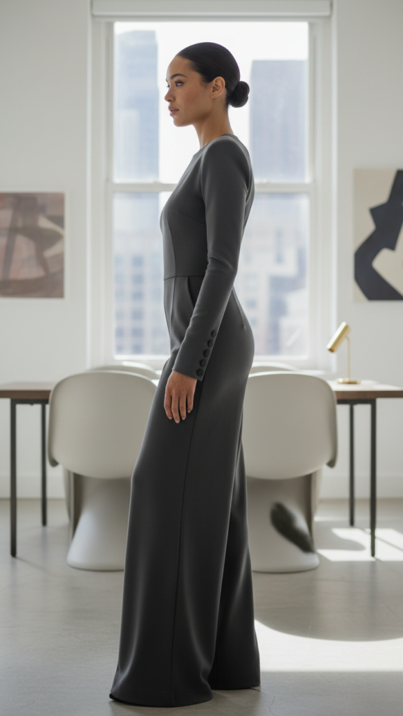 Elevating your office event wardrobe becomes effortless with a sophisticated jumpsuit that combines the polish of separates with the convenience of one streamlined piece. You’ll find that a customized silhouette creates professional elegance while offering comfort and mobility throughout your workday.