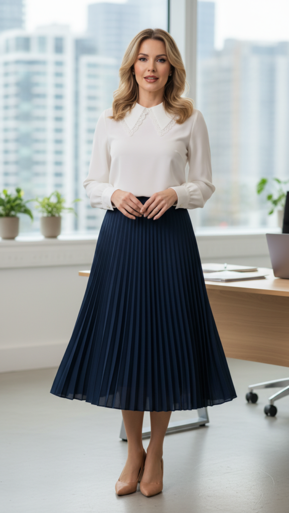 Midi Skirt and Blouse Pairing for Versatile Leadership