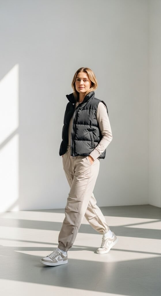 Puffer Vest and Low-Top Sneakers