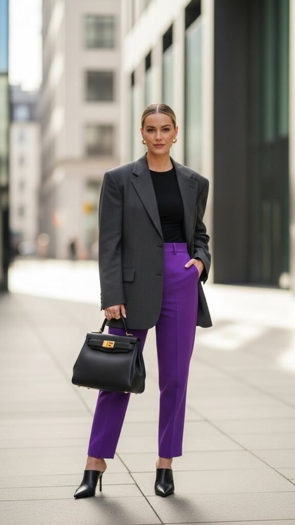 10 Purple Trousers Outfit Ideas That Stand Out Stylishly