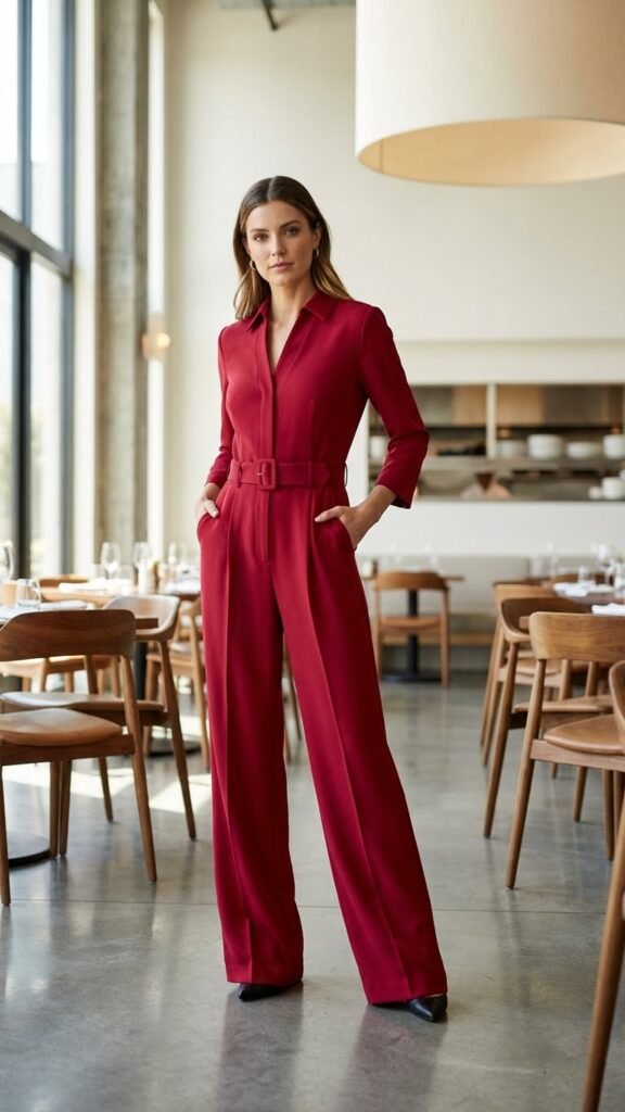 Why choose between a top and pants when you can have both in one perfect piece? A red jumpsuit is the answer to the eternal “I have nothing to wear” crisis. It’s polished, it’s modern, and getting dressed takes approximately two seconds.