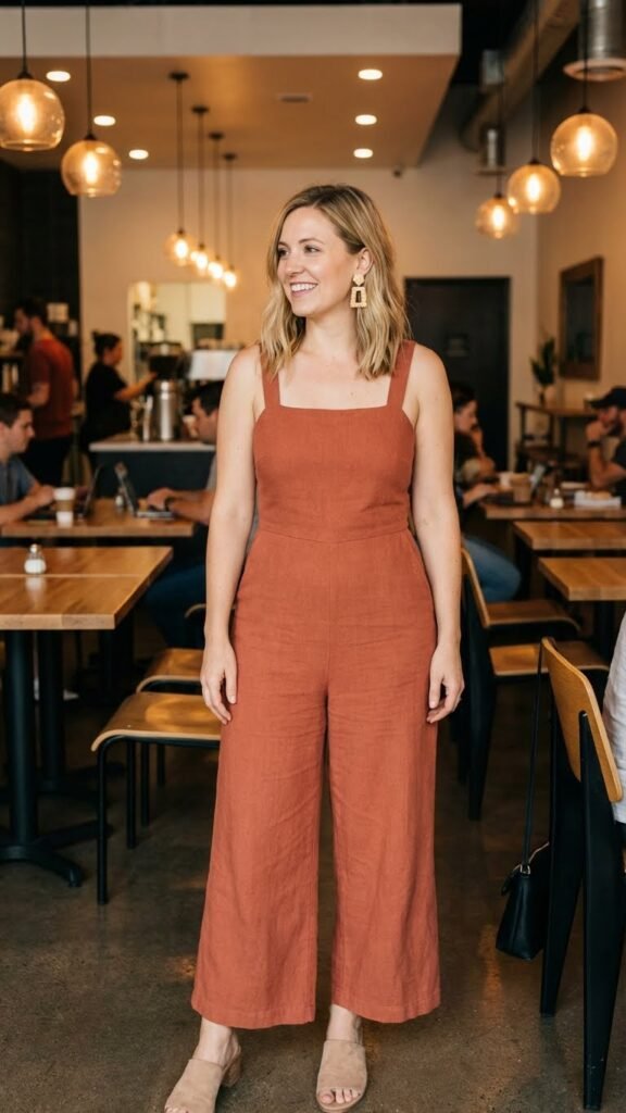 A well-fitted jumpsuit eliminates all decision-making because it’s literally one piece. Wide leg jumpsuits with a cinched waist work for almost every body type and give you that pulled-together look without any of the effort.