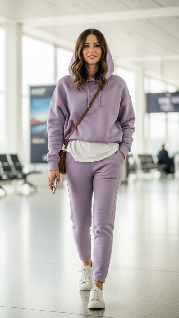 Okay, hear me out. Matching sweat sets have had a serious glow-up, and they’re perfect for spring travel. We’re not talking about ratty old sweats from college. Think elevated sets in pretty spring colors like lavender, butter yellow, or soft pink. The matching aspect makes it look intentional and stylish instead of “I gave up.”