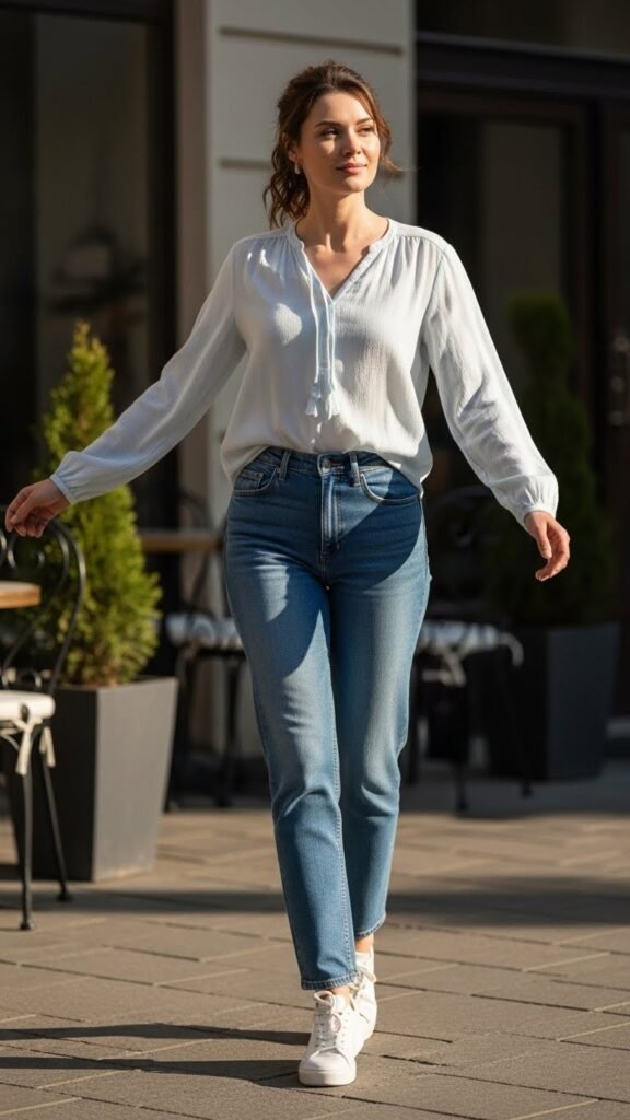 Want to look put-together without actually trying? Wide leg trousers are your secret weapon. They’re as comfortable as sweatpants but look a thousand times chicer. Tuck in a lightweight blouse (silk or cotton, your choice), and you’ve got instant polish.