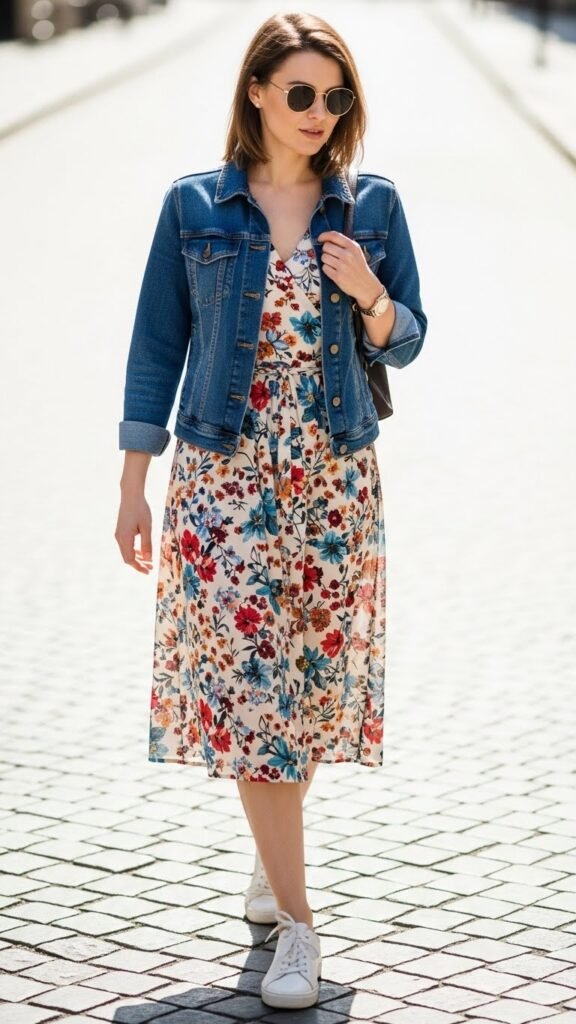Is there anything more classic for spring travel than a midi dress? I don’t think so. The midi length is perfect because it’s not too short for conservative destinations but still feels breezy and feminine. Add a denim jacket on top, and suddenly you can handle anything from chilly plane air conditioning to sunny afternoon wandering.