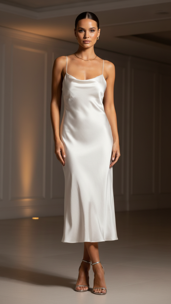 Can we talk about how a white silk slip dress makes everyone look like a goddess? Because it does. The way it catches light, drapes over curves, and moves when you walk is genuinely magical. This is the white party outfit idea that feels both timeless and completely on-trend.